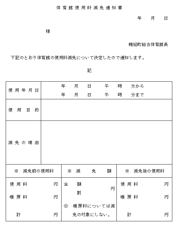 2 館長は、使用料減免の可否を決定したときは、総合体育館使用料減免通知書(