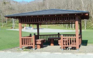 炊事場の横には焼肉スペースを設けています。家族や仲間うちで、野外バーベキューを楽しむことができます。また、入口付近にある池の近くには東屋があり、散歩の帰りやちょっと休憩したい時にくつろげる場所となっています。